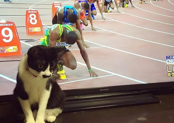 Si kucing lucu ini mau ikutan lomba lari maraton rupanya. Doi mungkin punya bakat terpendam ya.