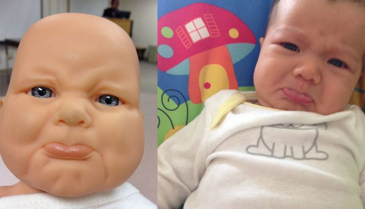 Apa kesan pertama kalian pas liat foto ini? Yang ga ngeuh pasti ngira kedua foto bayi ini mirip ekspresinya. Yup emang mirip, tapi tau ga kalo sebenernya bayi yang sebelah kiri itu bukan bayi beneran alias boneka. Nah kalo yang sebelah kanan itu baru bayi beneran. Hihihii lucu ya bikin gemess..