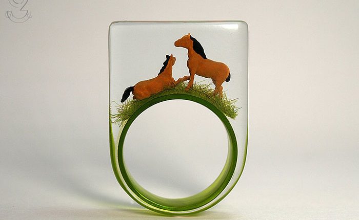 Lucu dan super unik banget kan? Cincin di atas adalah karya Isabell Kiefhaber. Cincin unik dan menarik ini menawarkan sesuatu yang berbeda dari perhiasan pada umumnya, yaitu miniatur berbagai benda dan makhluk hidup di dalamnya. Desainer perhiasan asal Jerman ini membuat cincin unik ini dengan setiap cerita yang berbeda loh di setiap desainnya, makanya desain perhiasannya selalu terlihat hidup dan nyata. Isabell berpendapat bahwa keajaiban itu bisa dibuat bahkan dari hal yang sekecil apapun. Keren banget ya!