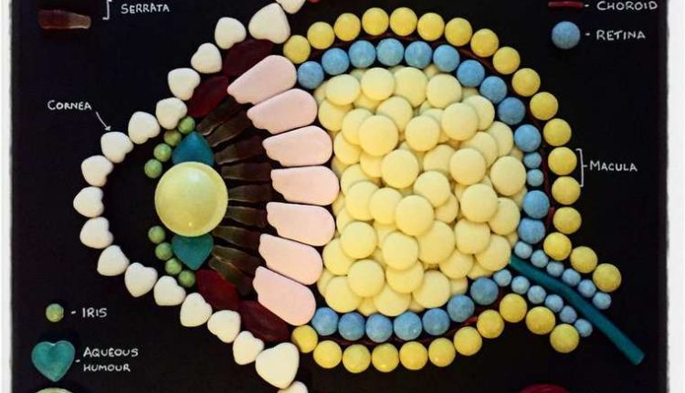 Struktur bagian mata manusia ini dibuat dengan warna yang berbeda sesuai dengan warna aslinya loh. Emm, ngomong-ngomong permen susu putihnya keliatan enak ya?